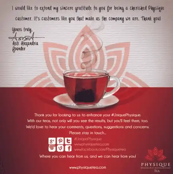 Physique Tea is an international wellness brand offering premium tea blends designed for people who want to lose weight naturally while nourishing their bodies with high-quality, health-focused ingredients. The brand speaks to a fitness-oriented and health-conscious audience, women who care about both their results and the lifestyle that surrounds them.