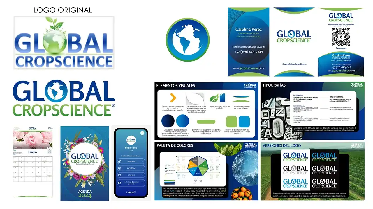 Global Cropscience – Sostenibilidad que florece Rediseño de marca para una empresa de productos biodegradables para campos de cultivos de flores. NICHO: Producto ecológico UBICACIÓN: Bogotá, Colombia