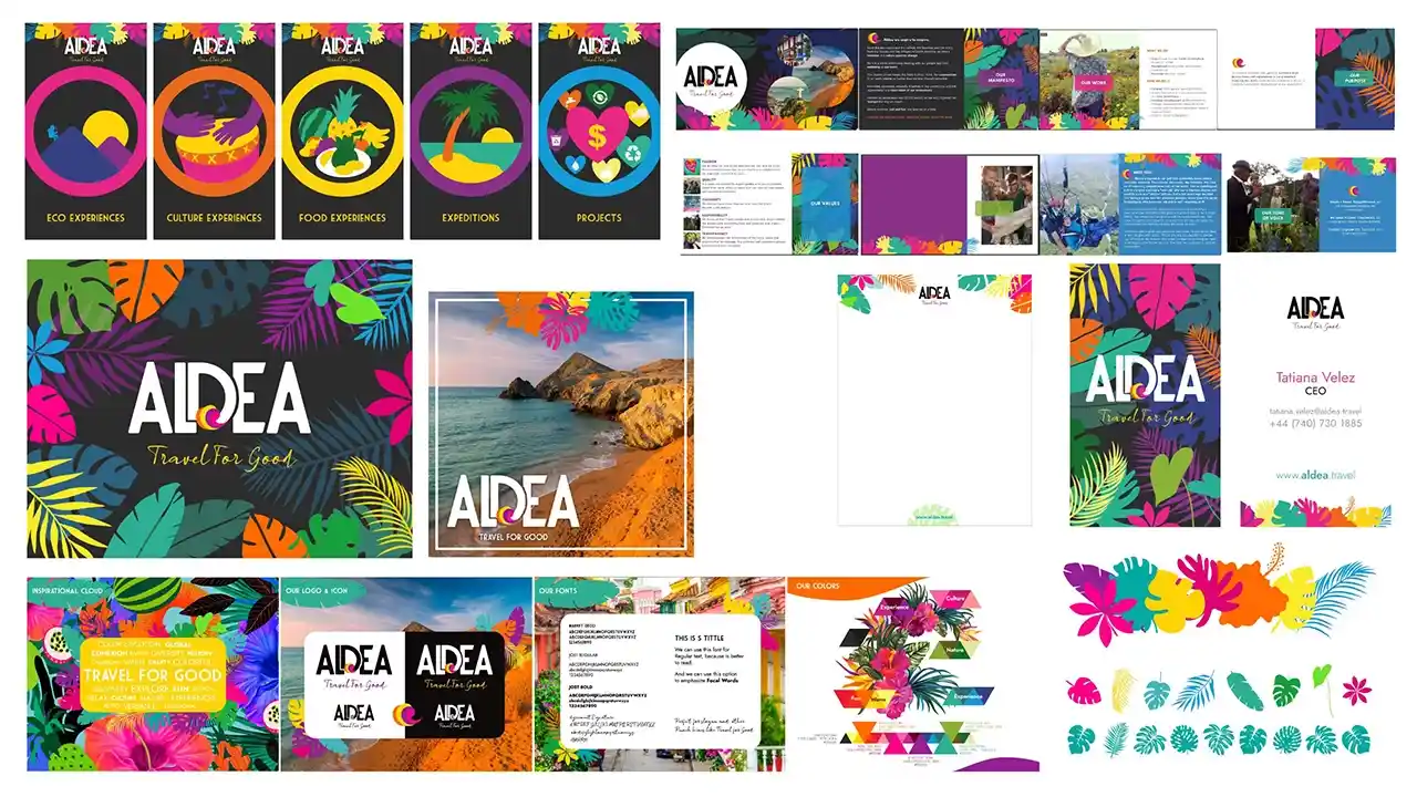 Aldea – Travel for good Diseño de marca para una agencia de experiencias de destino. NICHO: Turismo UBICACIÓN: Londres, Inglaterra