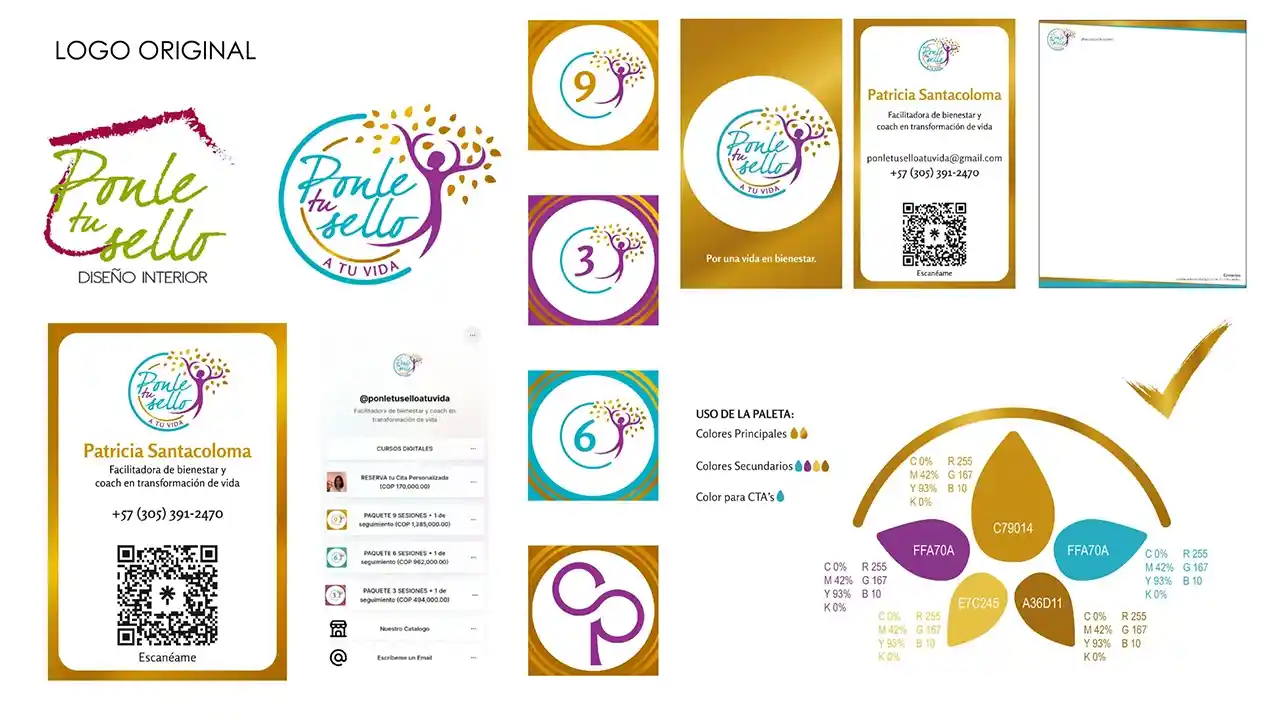 Ponle tu sello a tu vida – Por una vida en bienestar Rediseño de marca personal para facilitadora de bienestar y coach de transformación de vida, especializada en eliminación de bloqueos mentales y económicos. NICHO: Coaching UBICACIÓN: Bogotá, Colombia