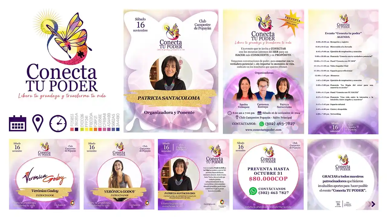 Conecta tu poder – Libera tu grandeza y transforma tu vida Diseño de marca para un evento de coaching NICHO: Coaching UBICACIÓN: Bogotá, Colombia
